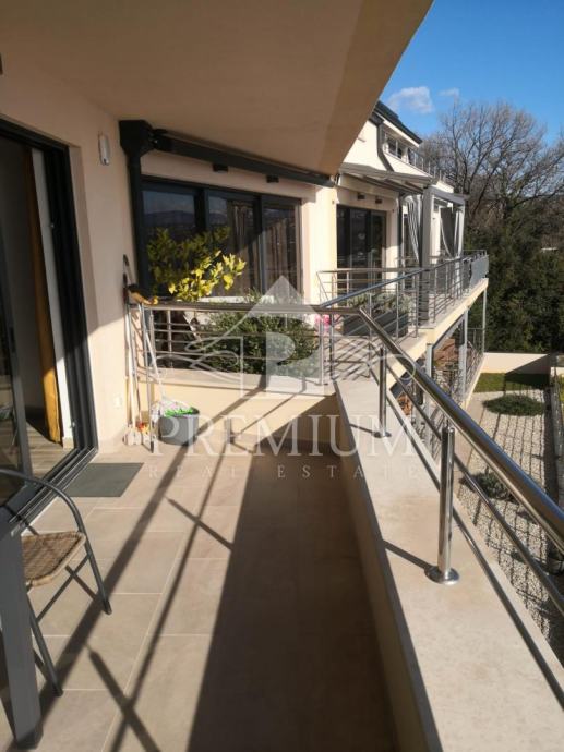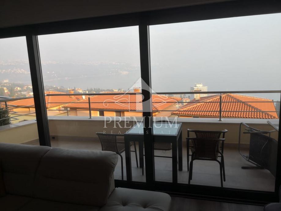 Stan se nalazi u modernoj novogradnji nedaleko centra Opatije, na blago povišenoj lokaciji s koje se pruža prekrasan pogled na grad i cijeli Kvarnerski zaljev...