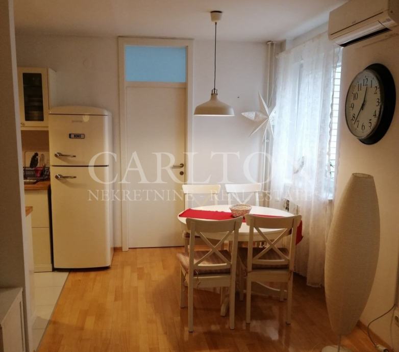 Iznajmljuje se na dulji period potpuno namješten 2-soban stan na 3.katu od 4 kata zgrade u Jablanskoj ulici u Rudešu. Stan je potpuno obnovljen 2020.godine uključivo unutarnjom drvenom i vanjskom plastičnom stolarijom, kupaonicom, kuhinjom, klima uređajem, protuprovalnim vratima, svijetlim jasen parketom, instalacijama i namještajem. Sastoji se od: dnevnog boravka, blagovaonice, kuhinje, spavaće sobe, kupaonice, predsoblja i zastvorene (ostakljene) loggie. Grijanje i topla voda je osigurana priključkom na Toplanu Zagreb. Stan je orijentiran na istok i okrenut prema parku unutar zgrada bez ikakve buke od prometnica. Besplatni vanjski parkirni prostori nalaze se oko zgrade. Autobusne stanice na Zagrebačkoj cesti i Zagrebačkoj aveniji su udaljene 3 ili 7 minute a tramvajska 12 minuta. Stan je u mirnom kvartu, sa uređenim stubištem. Zgrada se nalazi pored Sky office towers dva nebodera. U blizini su trgovine Studenac, Kaufland i Konzum. Ukupan mjesečni iznos režija u ljetnom period iznosi 80 €, a u zimskom periodu iznosi do 110 €.