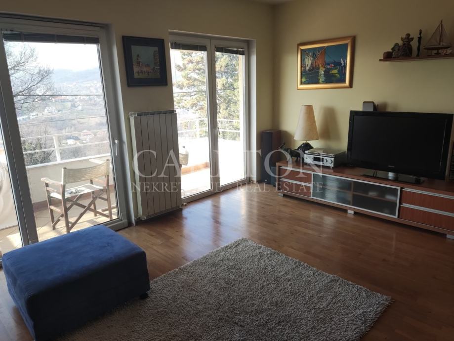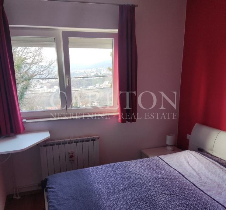 Iznajmljuje se 3-soban stan u novijoj zgradi u ul. Ive Serdara na Šestinama. Stan je kompletno namješten i maksimalno opremljen. Stan se sastoji od ulaznog dijela, hodnika s ugradbenim ormarom, kuhinje i blagavaonice povezane s velikim dnevnim boravkom, dvije spavaće sobe, kupaonice modernog dizajna i velike terase.Stan je u odličnom stanju, potpuno opremljen svim uređajima i opremom potrebnom za dugotrajan boravak (klima uređaj, nova perilica rublja, perilica suđa, štednjak, pećnica, hladnjak, novi Smart TV - 55'', ugradbeni ormari...). Novi madrac, nova tuš kabina, dodatno muzičko ozvučenje. Stan krasi i prekrasan otvoreni pogled na Sljeme i Medvedgrad, kao i na sam Zagreb.Stanu pripada jedno parkirno mjesto. Moguć je najam garaže, uz naknadu od 100 €/mjesec.