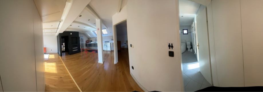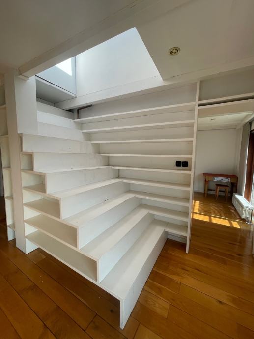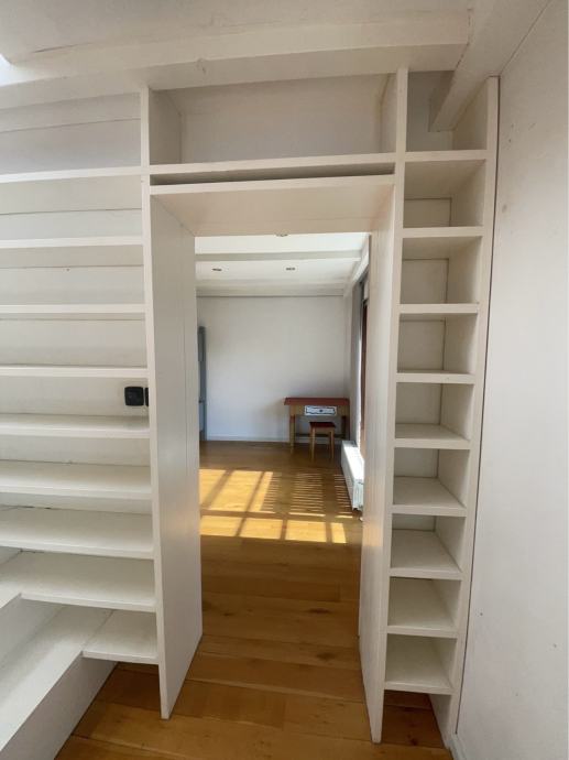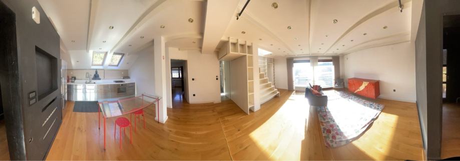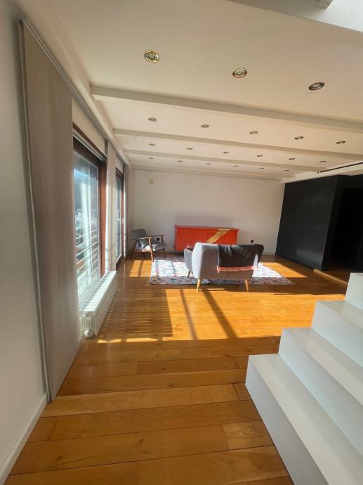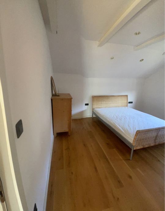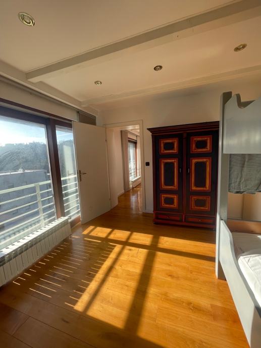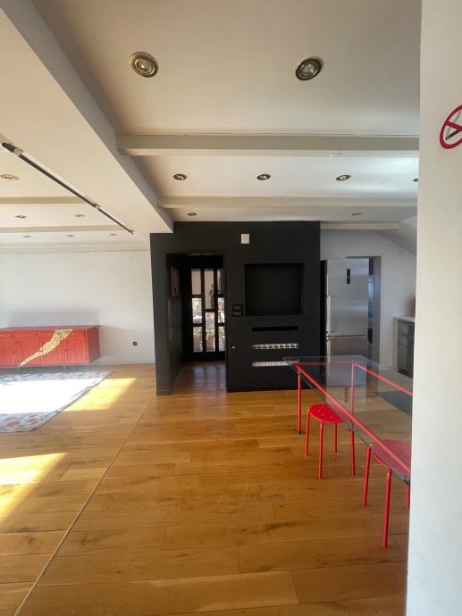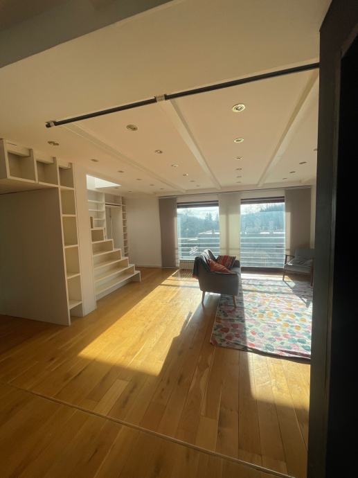 Iznajmljuje se prostran i svijetao trosoban stan površine 97 m² na drugom katu zgrade bez lifta. Zgrada ima ukupno dvije etaže.