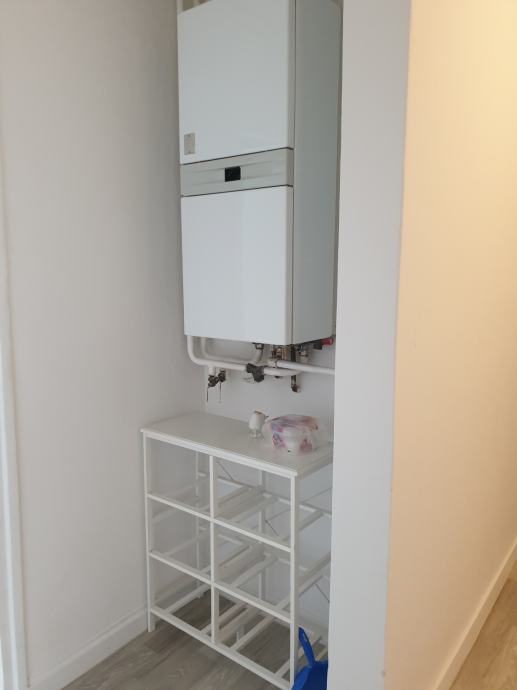 Sastoji se od ulaznog hodnika, dnevnog boravka, spavaće sobe, kuhinje s blagavaonicom, kupaonice/wc-a, loggie i dvije šupe u podrumu. Grijanje plinsko etažno. Stan ima zasebna brojila za plin, struju i vodu. Orijentacija stana je zapad-istok. Ulaz održavan.