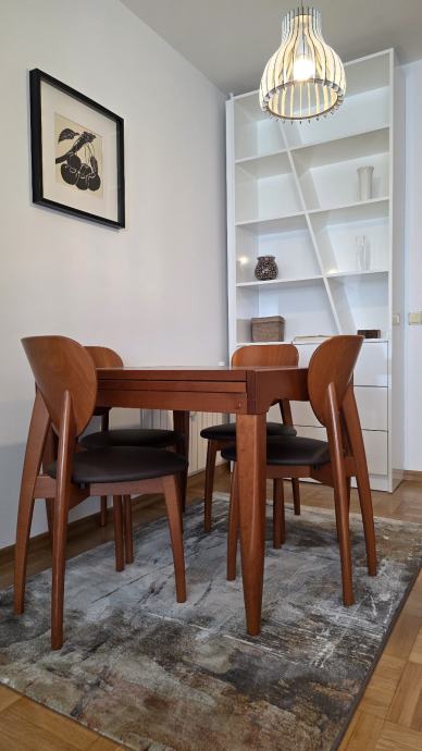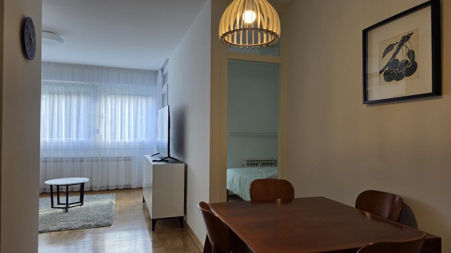 Iznajmljuje se novouređen (najmoprimac će biti prvi korisnik nakon preuređenja), potpuno namješten jednoipolsobni stan površine 42.39 m2 koji se nalazi na prvom od četiri kata stambene zgrade u ulici Milana Rešetara. Stan se sastoji od ulaznog dijela, kuhinje, blagovaonice, kupaonice, spavaće sobe, dnevne sobe i lođe. Grijanje je na gradsku toplanu, a hlađenje na klima uređaj. Ispred zgrade dostupan je besplatan javni parking.