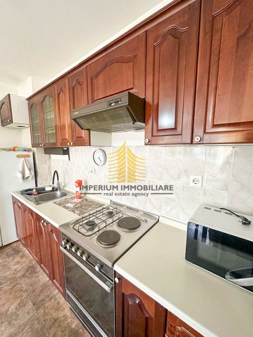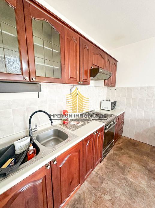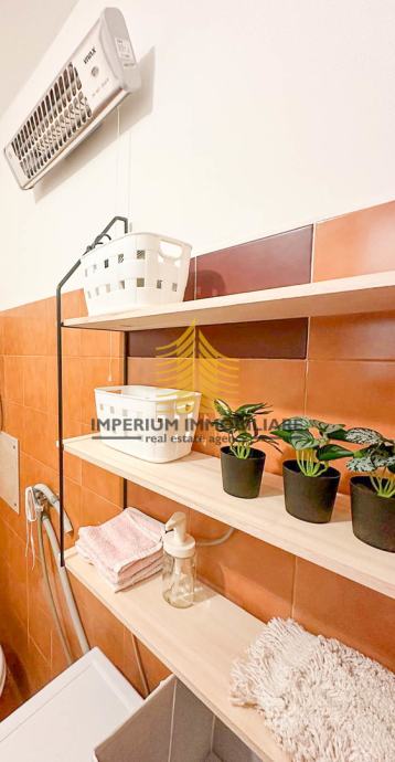Enterijer je pažljivo opremljen kako bi zadovoljio sve potrebe budućih stanara. Kuhinja s aparatima, perilica rublja, kada, TV, krevet i radni stol samo su neki od elemenata koji osiguravaju funkcionalnost i udobnost. Stan se grije i hladi putem klima uređaja, što omogućuje ugodnu temperaturu tijekom cijele godine.