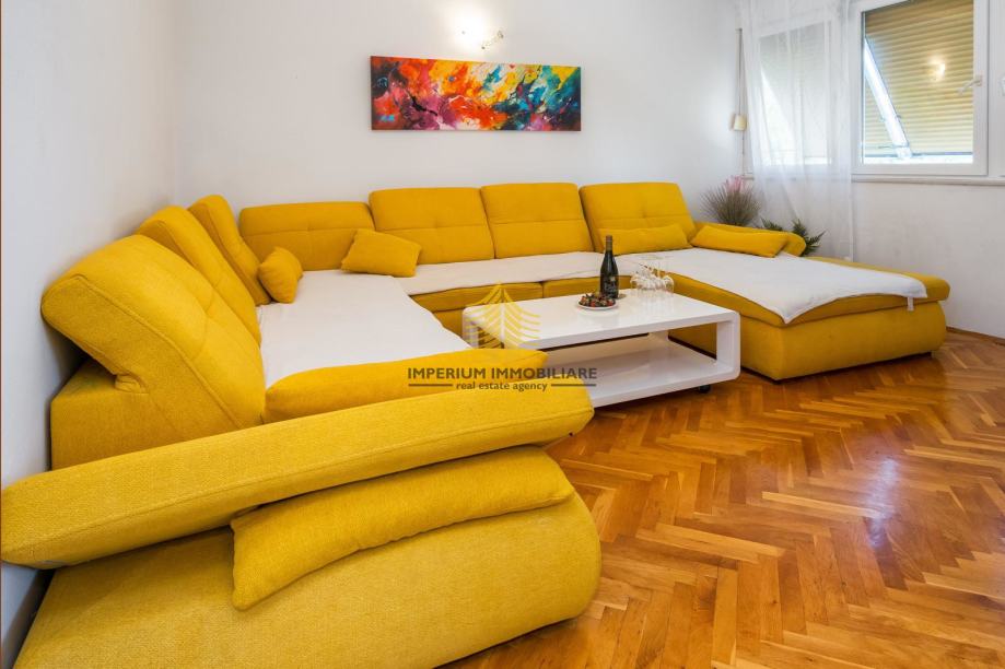 U ponudi je prostrani 3,5-sobni stan površine 90 m2, smješten na prvom katu peterokatnice. Stan se nalazi na atraktivnoj lokaciji s južnom orijentacijom, što ga čini izuzetno sunčanim tijekom cijelog dana.