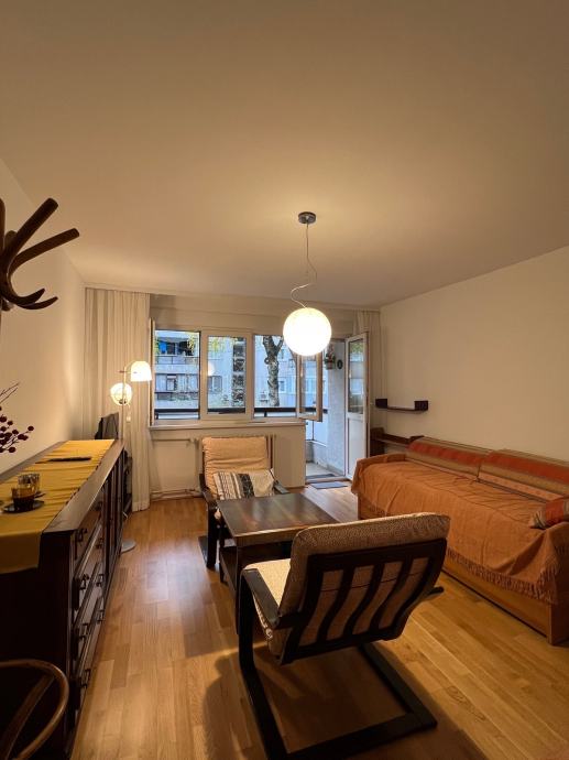 Iznajmljuje se potpuno namješten jednosoban stan površine 41 m2, u visokom prizemlju stambene zgrade.