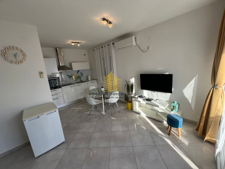 Unutarnji prostor opremljen je kuhinjom s aparatima, perilicom posuđa, perilicom rublja, TV-om te krevetom. Klimatizacija osigurava optimalnu temperaturu tijekom cijele godine. Posebnu vrijednost ovom stanu daju luksuzne značajke poput vrlo sunčane pozicije, uređene okućnice, umjetničkog i dizajnerskog uređenja te prostora za roštilj.