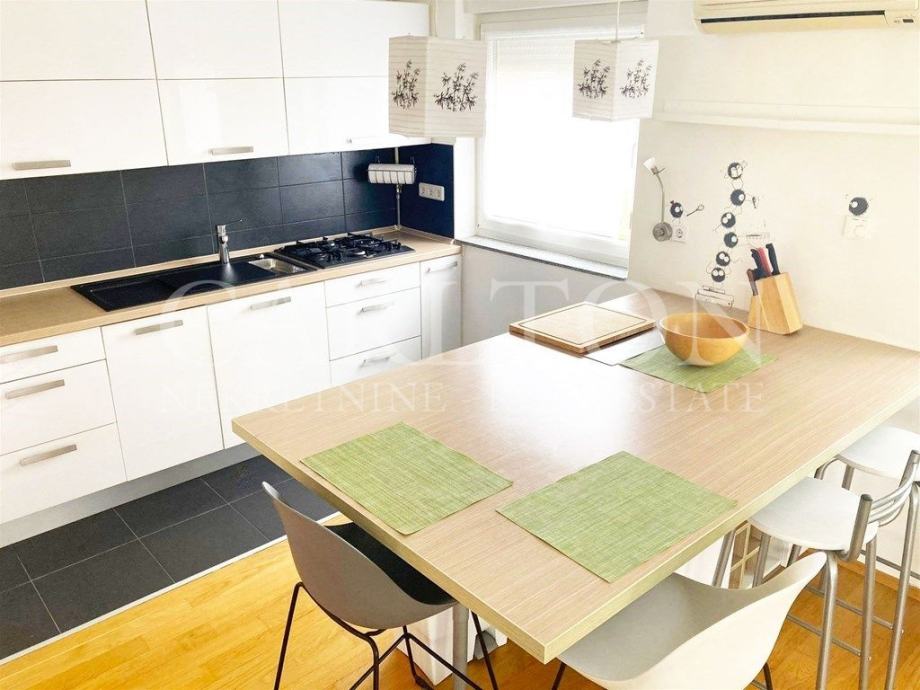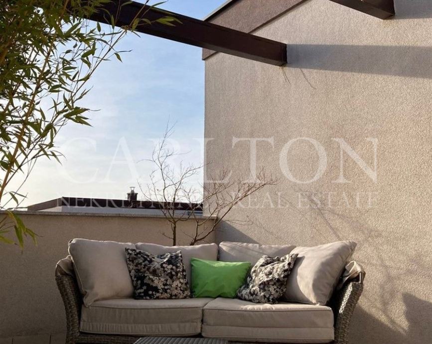 Prvi najam: Prostoran stan s velikom terasom Iznajmljuje se 3-soban stan od 87.00 m2, s velikom terasom i privatnim parkingom u novogradnji (2010), u manjoj zgradi s 5 stanova i na mirnoj lokaciji. Lokacija: Sv. Klara, Utinjska ulica. Blizina dućana, 3 shopping centra, 100m od autobusne stanice i 15min pješke do tramvaja na Aveniji Dubrovnik. Pozicija stana: Stan se nalazi na 2. katu (zadnji kat) i ukupne je površine 87 m2 (stan: 71 m2, terasa 16m2). Orijentacija stana: Istok-Jug-Zapad. Stan je u vrhunskom stanju, potpuno namješten s visoko kvalitetnim namještajem i kućanskim aparatima. Iznajmljuje se na minimalno 6 mjeseci, uz obavezan polog od jedne najamnine. Idealan za par i rad od kuće. Nepušači. -------------------------- Stan se sastoji od: - Hodnika, - Kuhinje i prostranog dnevnog boravka (31m2), - Spavaće sobe (12m2), - Radne sobe (10m2), - Terase (16m2), - Špajze Uz stan ide još: - Privatno parkirno mjesto ispred zgrade - Pristup okućnici i vrtu oko zgrade Ostalo: - Centralno plinsko grijanje, klima - Internet: Optika, T-com - Izvedena voda na terasi - Kuhalo na plin, električni inox grill (Teppanyaki) na pultu - Frižider, pećnica, perilica suđa, nova i ultra tiha perilica rublja - Luksuzni latex madrac hotelske (5*) kvalitete i krevet od masivnog hrasta - Šipka za vježbanje (zgibove) Pozicija stana osigurava puno svjetlosti tijekom cijelog dana, i ugodne boravke na terasi. Stan je u vrhunskom stanju, s velikom pažnjom posvećenom na detalje namještaja, uređaja i atmosfere boravka u stanu. Prostran i u potpunosti namješten, idealan je za par i pojedince koji rade od kuće. Optički internet je već proveden i dostupan u stanu, te manja soba već je uređena kao radna soba.