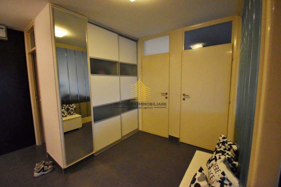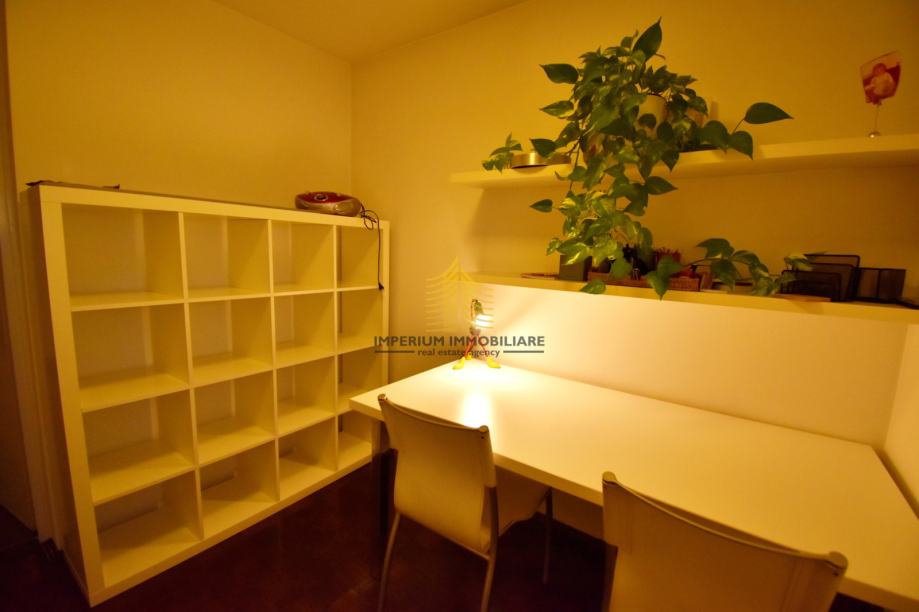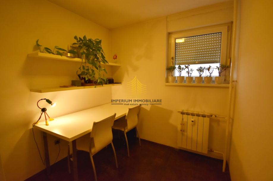 Stan raspolaže s dvije sobe koje su trenutno opremljene kao spavaća i radna soba, uz dnevnu sobu, kuhinju, kupaonicu i WC. To ga čini pogodnim za obitelji, parove ili pojedince koji traže dodatni prostor. Dodatnu vrijednost donosi lođa, idealna za uživanje u pogledu i suncu. Za lakši pristup zgradi na raspolaganju je dizalo.