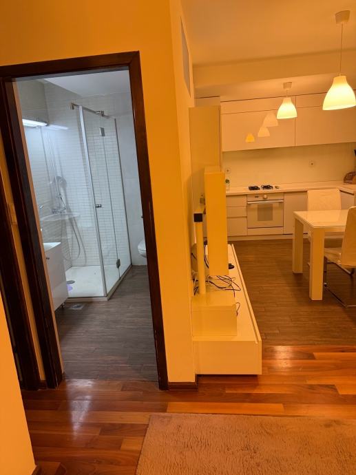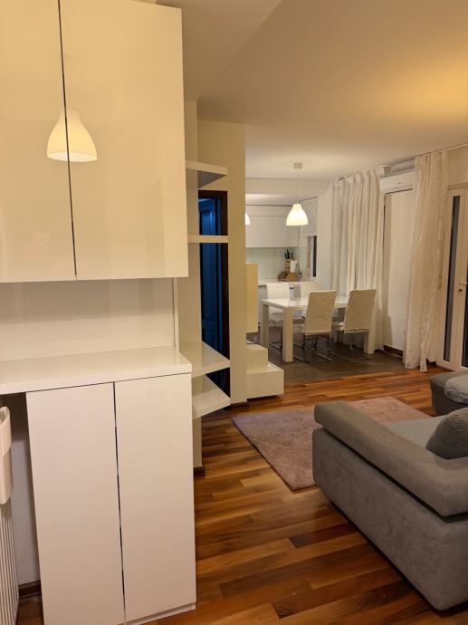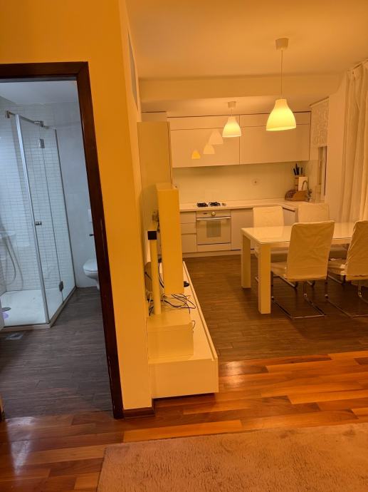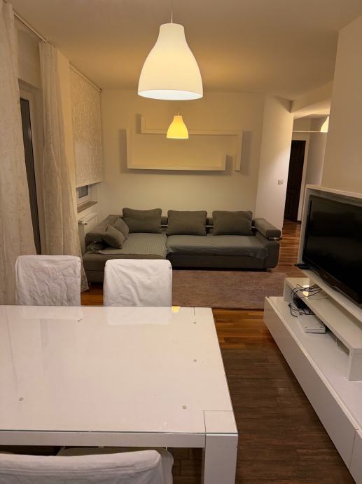 Iznajmljuje se kompletno namješten stan površine 56 m², uređen kao na slikama. Stan se sastoji od dvije spavaće sobe te dnevnog boravka i kuhinje u open space konceptu.