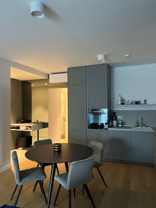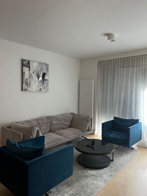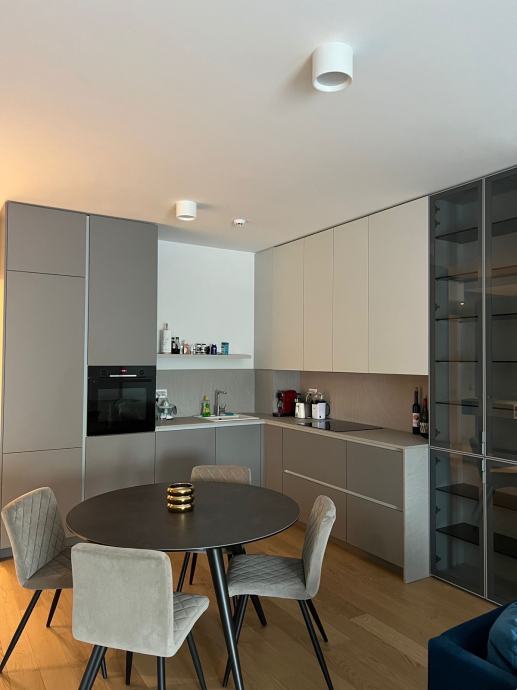Stan ima dvije spavace sobe, dvije kupaonice s WC-om i lođu. Kuhinja je opremljena ugradbenim aparatima. Stan dolazi potpuno namješten.