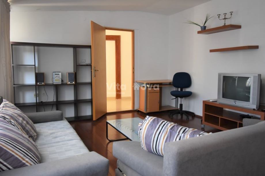 Iznajmljuje se dvosoban stan na Poluotoku površine 85 m2. Nalazi se na 3. katu stambene zgrade, te se sastoji od dvije spavaće sobe, kupaonice, kuhinje i zasebnog dnevnog boravka koji se također može koristiti kao 3. spavaća soba.
