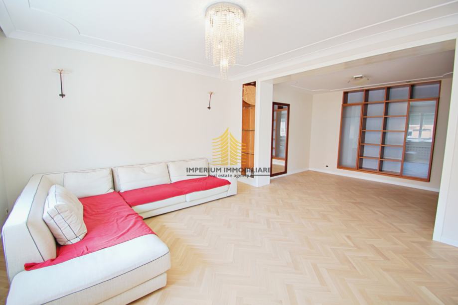 Stan se nalazi u reprezentativnoj zgradi u središtu grada, što ga čini atraktivnim izborom za one koji cijene blizinu svih važnih sadržaja, kulturnih institucija, poslovnih zona i javnog prijevoza. Prostrana površina omogućuje udoban život, a raspored uključuje tri spavaće sobe i dnevni boravak, s orijentacijom na jug, istok i sjever, što osigurava obilje prirodnog svjetla tijekom cijelog dana.