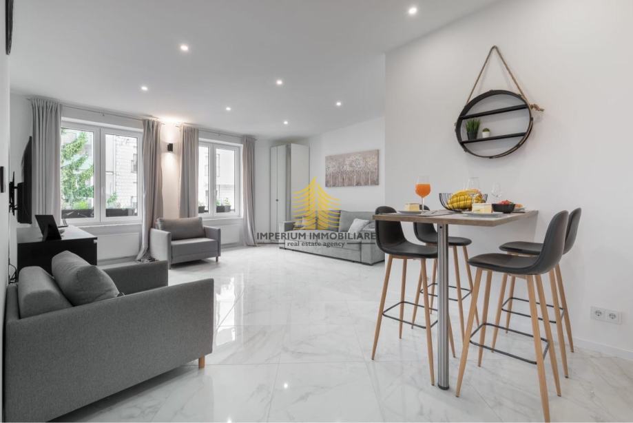 Stan je temeljito adaptiran 2020. godine, što mu daje moderan duh unutar povijesnog okvira. Smješten na mirnoj lokaciji, ovaj stan nudi savršeno mjesto za opuštanje nakon užurbanog dana u gradu. Obilje prirodne svjetlosti ulijeva se u prostor kroz velike prozore, naglašavajući prostranost i udobnost.