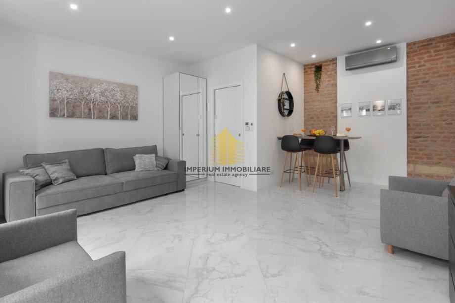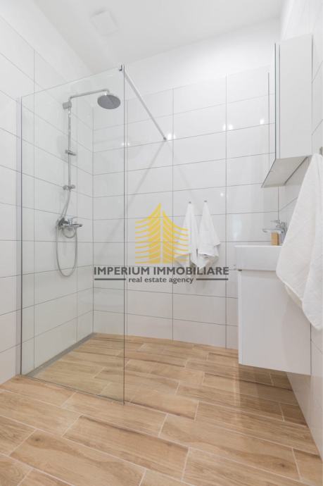 Unutrašnjost stana dizajnirana je s naglaskom na funkcionalnost i stil. Protuprovalna vrata osiguravaju dodatnu sigurnost. Sustav grijanja uključuje električno podno grijanje i klima uređaj, osiguravajući ugodnu temperaturu tijekom cijele godine.