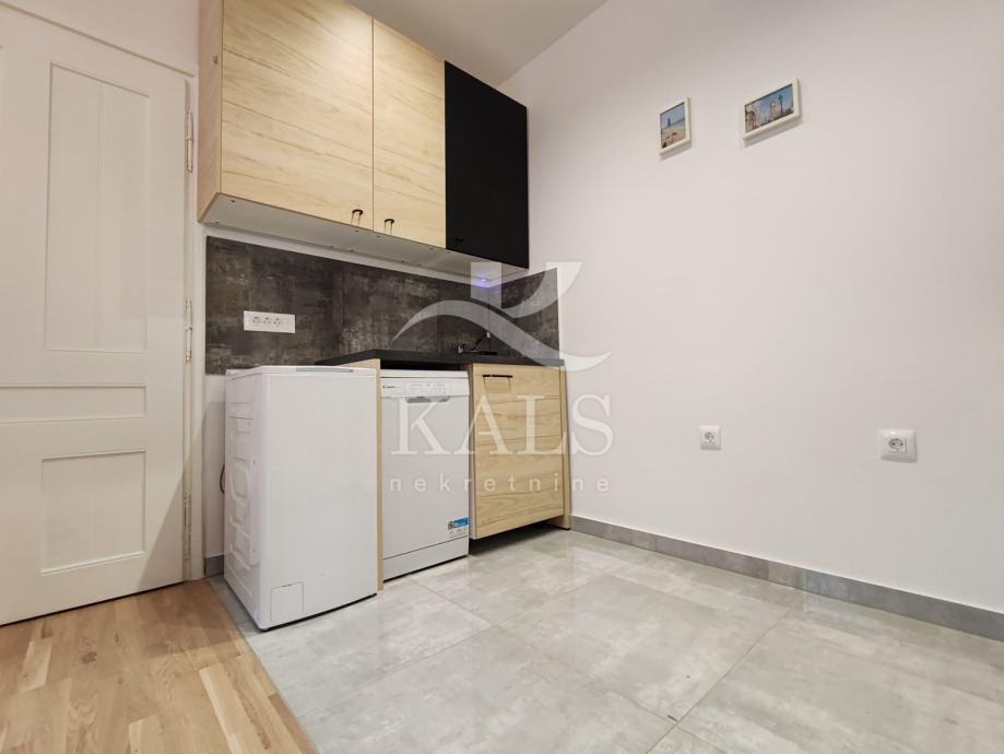 Sastoji se od ulaznog prostora, kuhinje i blagovaonice, prostrane sobe sa dnevnim i spavaćim prostorom i kupaonice s WC-om.