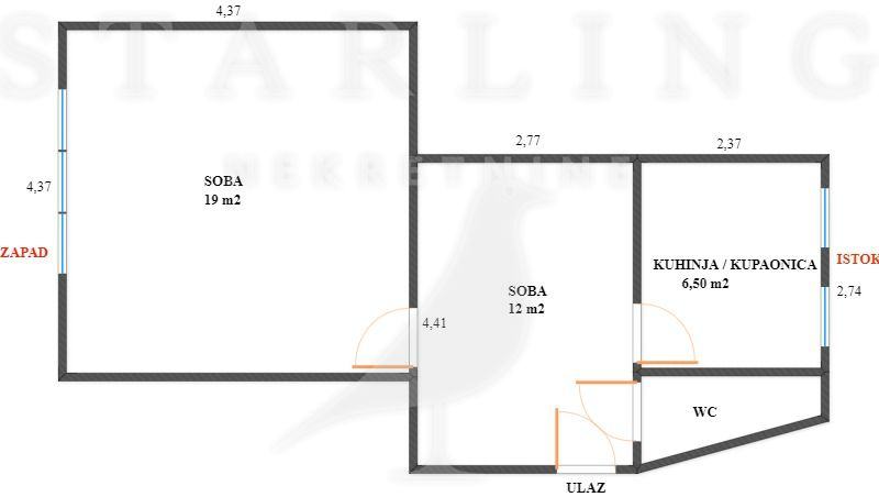 Najam dvosobnog stana u suterenu zgrade, dvostrane orijentacije. Zgrada se nalazi u Vrbanićevoj ulici. Stan se s ulične strane nalazi u suterenu dok je s dvorišne u razini zemlje. Stan se sastoji se od dvije sobe, kuhinje i kupaonice smještene u istoj prostoriji te zasebnog wc-a. Upisana površina stana iznosi 38 m2.