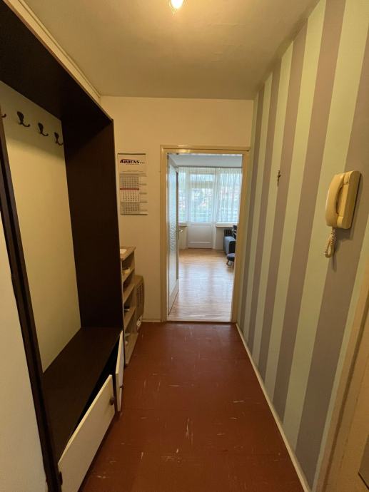 Namješten stan sastoji se od prostorija: hodnik, kupaonica s wc-om, kuhinja + boravak. Sa 8.kata gdje je smješten stan pogled se pruža sjeveno na Medvednicu i Sljeme. Zgrada neoštećena u potresu posjeduje lift, susjedstvo je mirno, nenametljivo i ugodno. Velika prednost je blizina javnog prijevoza - bus 1 min, vlak 5 min, javnih ustavnova - doktor, banka, pošta, općina unutar 5 min, škola, vrtić unutar 5 min. Režije tokom zime do 80 € (gradska toplana - razdjelnici, struja, voda, održavanje zgrade, gradska čistoća,...) a preko ljeta manje.