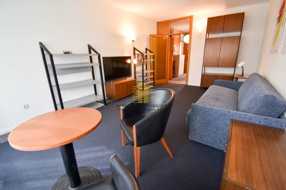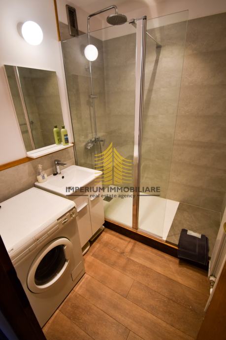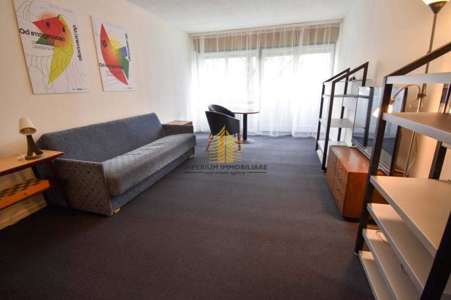 Unutrašnjost stana je funkcionalno raspoređena s jednom spavaćom sobom. Dodatni komfor pruža dizalo u zgradi, osiguravajući lak pristup svim katovima. Grijanje preko toplane osigurava ugodnu temperaturu tijekom hladnijih mjeseci. Kupaona sadrži tuš kabinu i perilicu rublja.