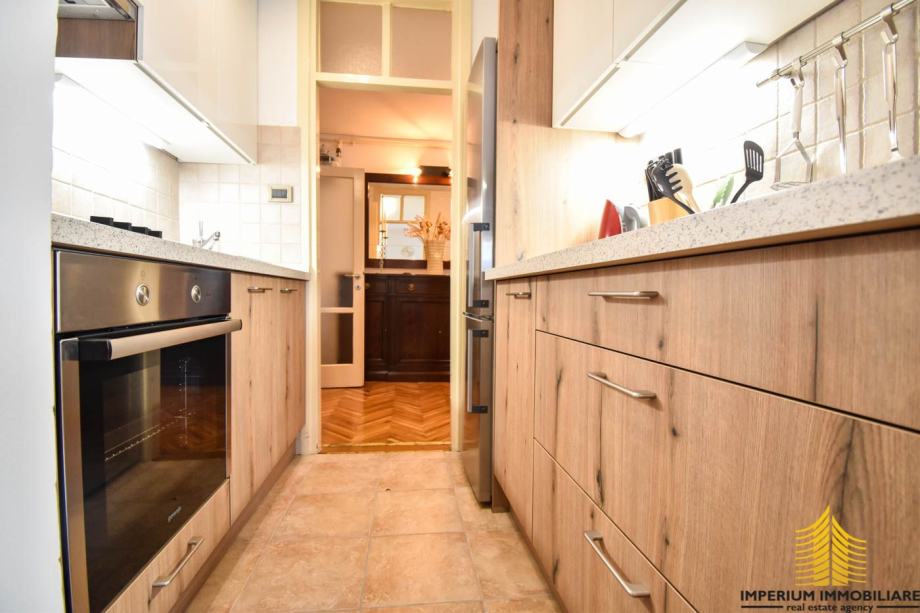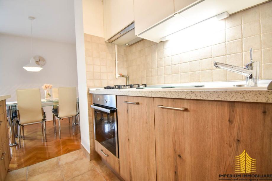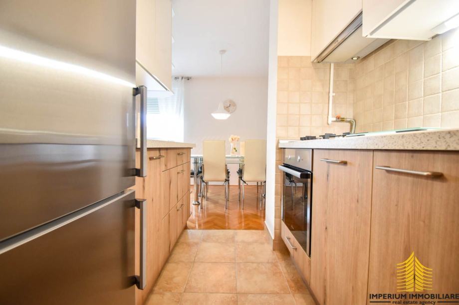 Stan je kompletno namješten svim potrebnim namještajem i kućanskim aparatima (perilica rublja, perilica posuđa, klima uređaj,...).