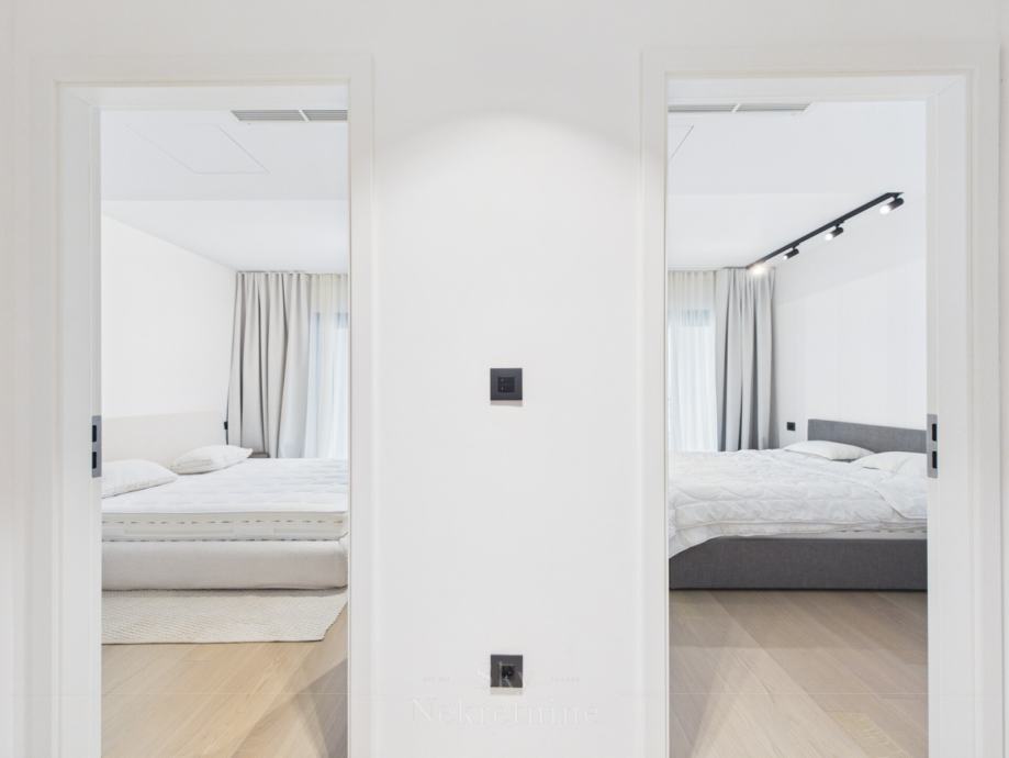 Stan je orijentiran na zapad-istok, obogaćen je obiljem dnevnog svjetla zahvaljujući velikim kliznim staklenim stijenama koje prostoru daju obilje svjetlosti i eleganciju.