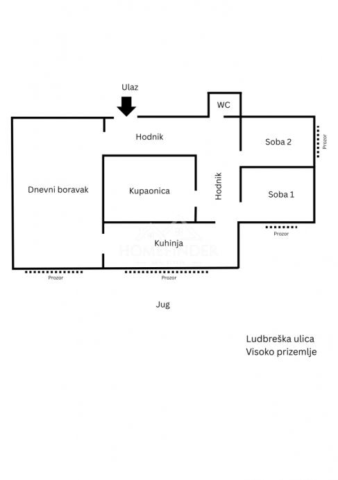 Sastoji se od: dvije spavaće sobe, dnevnog boravka, kuhinje, ostave, hodnika, odvojene kupaonice i WC-a.