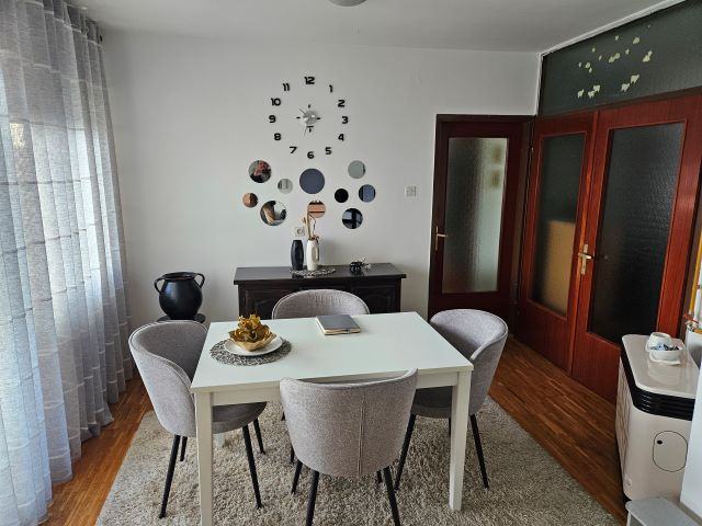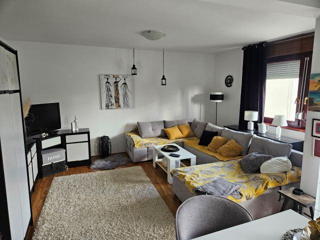 Prodaje se dvosoban stan u Našicama na II katu zgrade površine 62,58m2 koji se sastoji od dnevnog boravka s trpezarijom, kuhinje posebno, spavaće sobe, kupaonice, WC posebno, ostave, hodnika, te balkona.