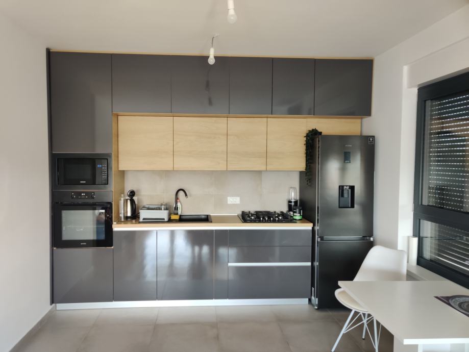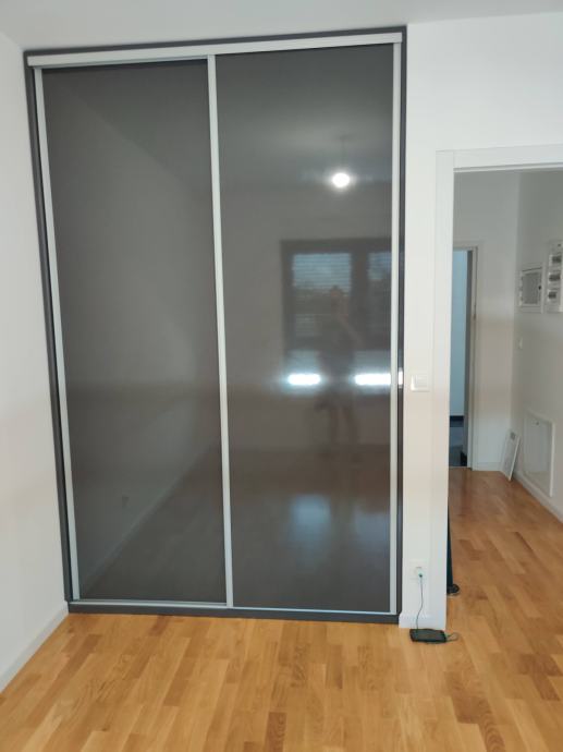 Stan se prodaje s kuhinjom rađenoj po mjeri i svim ugradbenim aparatima te ugradbenim ormarom u spavaćoj sobi .