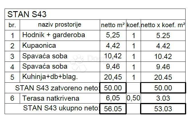 Ukupno netto: 56,05 m2