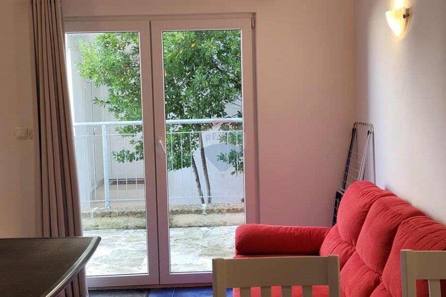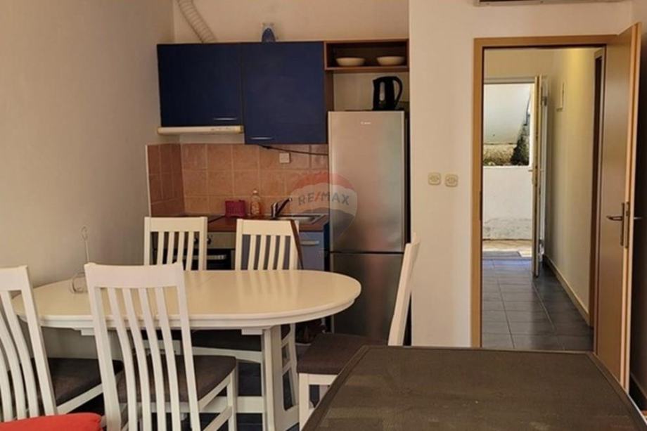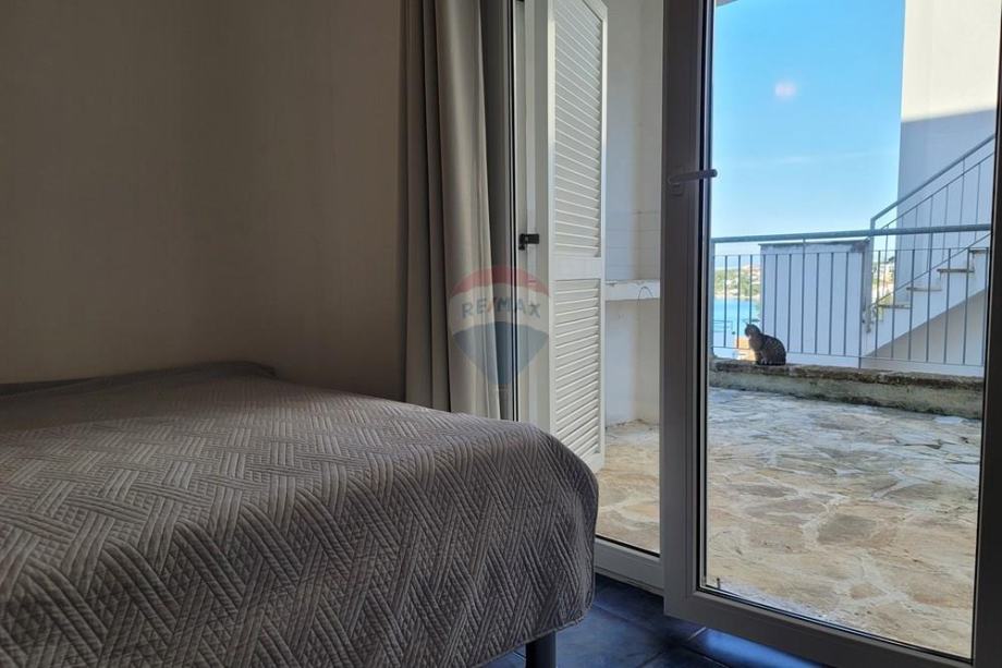 Stan, južne orijentacije, smješten je svega oko 70 metara od glavne plaže. Unutra se otvara osvjetljen i prozračan open space prostor s kuhinjom i dnevnim boravkom, te sa dvije prostrane spavaće sobe i kupaonicom, ukupnog stambenog prostora 48,81 m², dopunjen korisnom spremom od 2,25 m². Ipak, srce ove nekretnine je prostrana kamena terasa od 26 m² s pogledom na more, gdje su već izvedeni priključci vode i struje, pa se lako može urediti ljetna kuhinja i stvoriti novi životni prostor pod nebom.