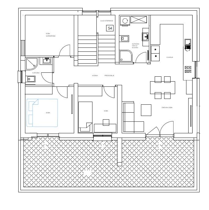 - otvoreni dnevni boravak sa kuhinjom i blagovaonicom