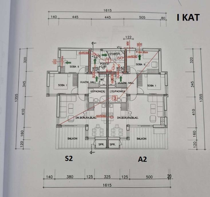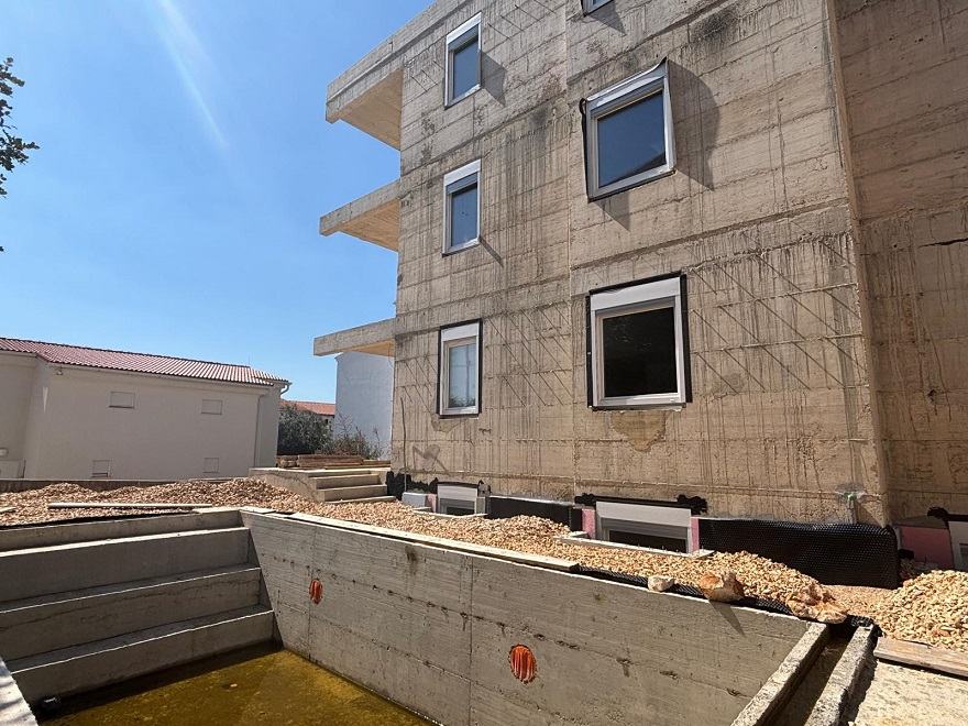 Prodaje se trosobni stan (S2) površine 66,52 m2 na I katu apartmanske zgrade u izgradnji u Novalji, blizu pješčane plaže Punta Mira.