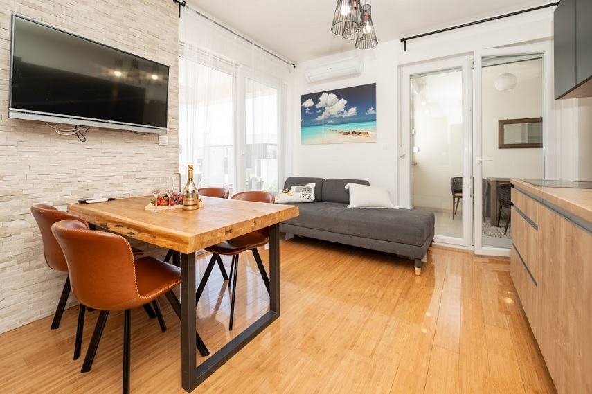 Apartman je klimatiziran i potpuno namješten te se kao takav prodaje.