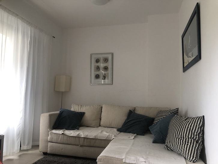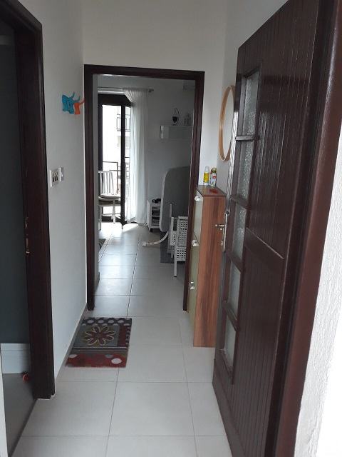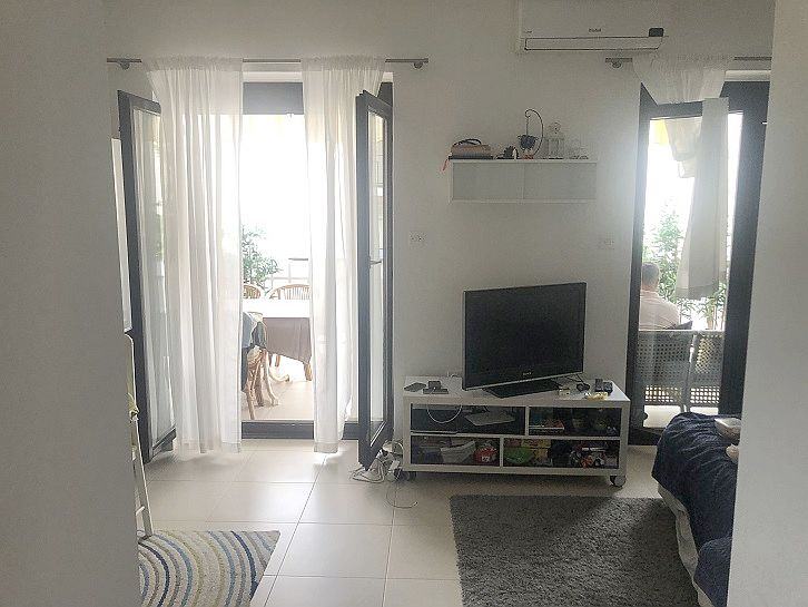Sastoji se od ulaznog hodnika, spavaće sobe, kupaonice i dnevnog boravka s kuhinjom iz kojeg se izlazi na natkriveni balkon s tendom.