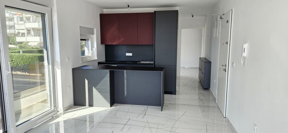 Djelomično je opremljen namještajem (kuhinja sa ugradbenim aparatima, sudoperom i špinom, TV komoda, ormar i konzolni stol u spavaćoj sobi, kupaonski ormarić te ormar za cipele u hodniku).