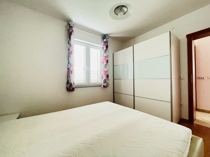 Nalazi se na II katu. Sastoji se od ulaznog hodnika, 2 sobe, dnevnog boravka s kuhinjom, kupaonice s wc-om, wc-a, spremišta i terase s pogledom na more i Novalju.