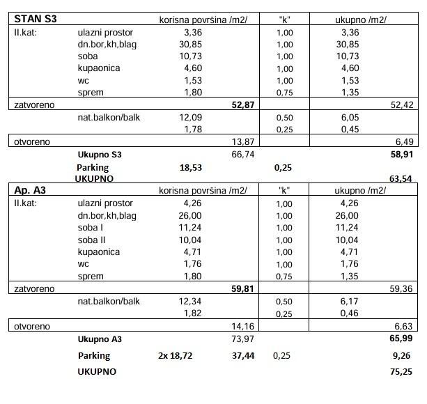 Prodaje se dvosobni apartman (S3) obračunske površine 63,54 m2 na II katu novogradnje u Novalji, Lunjski put.