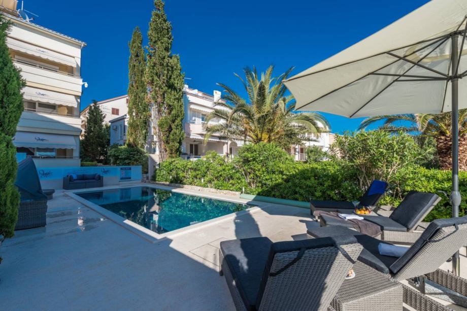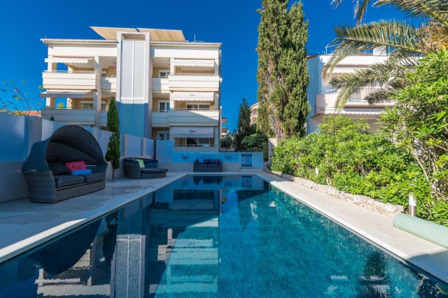 Vila je sagrađena prije 10 godina i redovito je održavana. Nudi savršen spoj udobnosti, privatnosti i mediteranskog načina života. Svaki stan ima svoju terasu ili balkon s prekrasnim pogledom na more, dok se do plaže doslovno dolazi u nekoliko koraka. Svaki stan je pažljivo dizajniran kako bi pružio maksimalnu udobnost, privatnost i neometan pogled na more – savršeno mjesto za odmor, stanovanje ili investiciju.