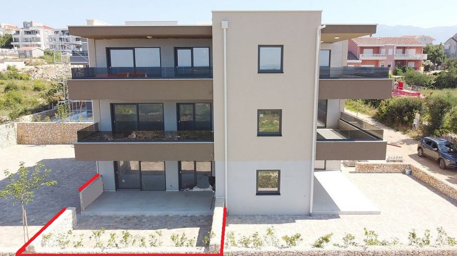Prodaje se trosobni apartman (A1) obračunske površine cca 75,15 m2 u prizemlju moderne novogradnje u Novalji.