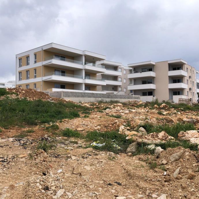 u novoizgrađenoj zgradi nedaleko od plaže Babe prodaje se trosoban stan u prizemlju., neto površine 85,5 m2 s jednim parkirnim mjestom površine 12,50 m2