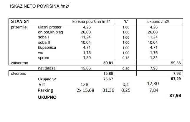 Prodaje se trosobni apartman (S1) obračunske površine 87,93 m2 u prizemlju novogradnje u Novalji, Lunjski put.