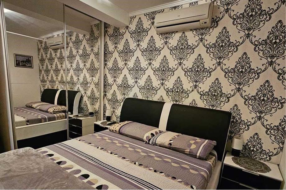 Stan uključuje dvije spavaće sobe i jednu kupaonicu, zajedno sa suvremenom kuhinjom koja je povezana s blagovaonicom, savršena za obiteljska okupljanja i nježno druženje. Potpuno namješten, ovaj stan nudi sve potrebne sadržaje, uključujući klimatizacijski sustav, te priključke za struju i vodu, osiguravajući bezbrižno stanovanje.