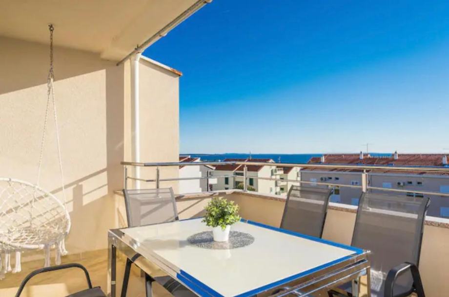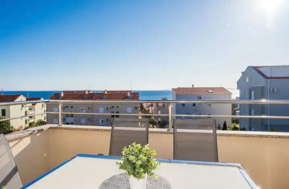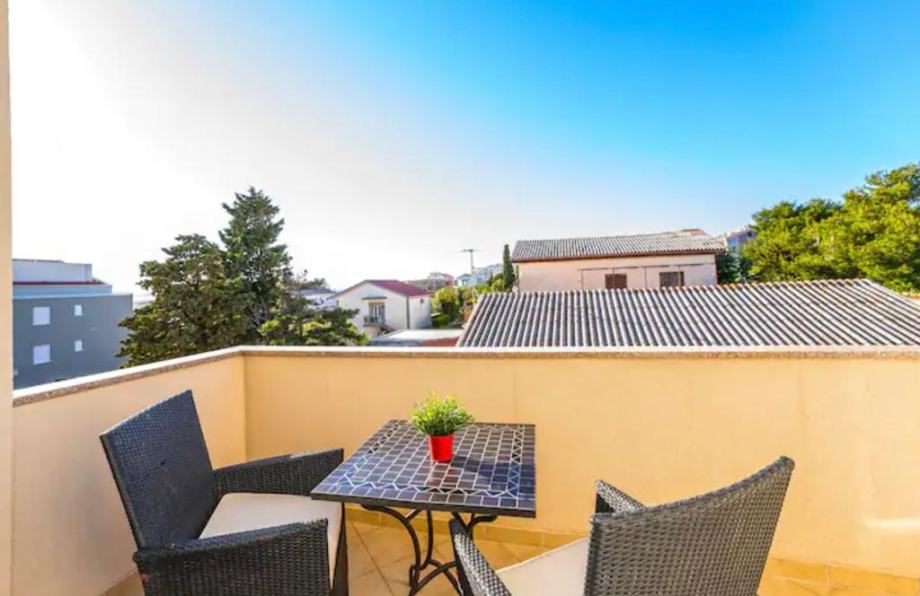 Ima dvije velike terase s pogledom na more i cijelu Novalju.