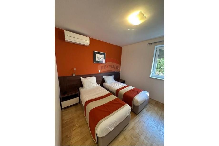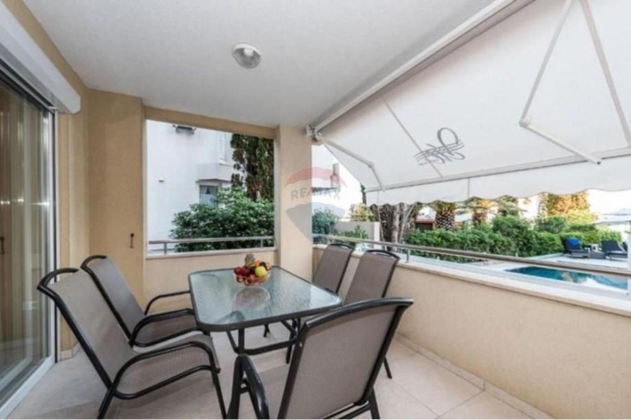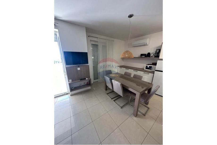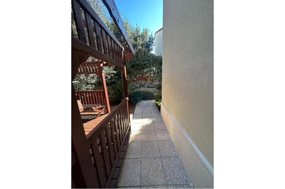 Interijer je suvremen i mediteranski, s kuhinjom koja se prostire na blagovaonicu, savršeno za okupljanje obitelji i prijatelja. Povezanost s vanjskim prostorom je briljantna, zahvaljujući velikom balkonu i vrtu s bazenom koji nudi savršenu privatnost. Dodatne beneficije uključuju spremište, vlastita 4 parkirna mjesta, te strujnu i vodovodnu infrastrukturu, kao i brz pristup ADSL mreži.
