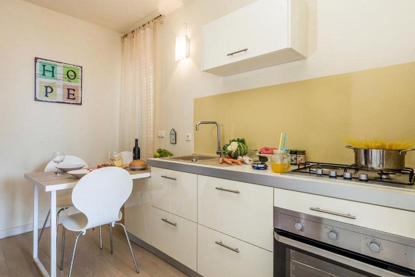 Sastoji od dnevnog boravka i kuhinje, 2 spavaće sobe, kupaonice, hodnika, spremišta, balkona i loggie, ukupne površine 60,80 m2.