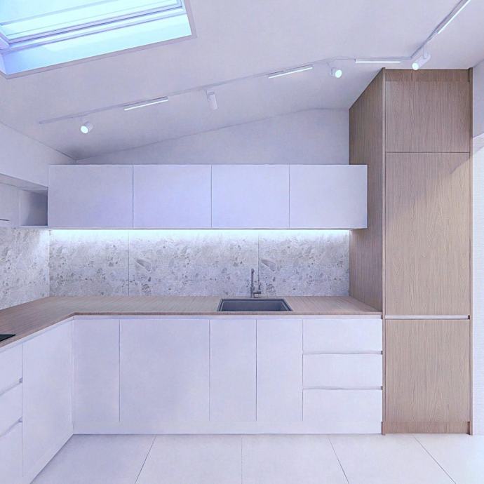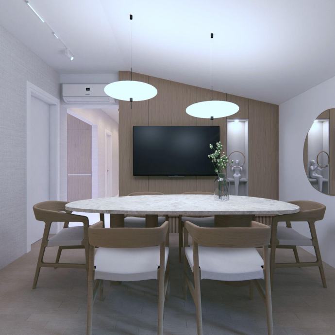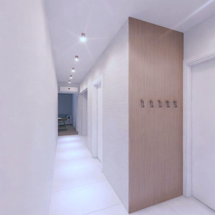 Sastoji se od prostranog dnevnog boravka, dvije spavaće sobe, kuhinje i prostrane kupaonice. Stan je moderno uređen, svijetao i vrlo ugodan za boravak.