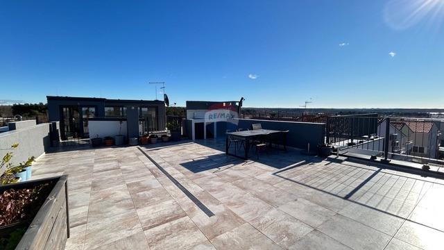 Stanu pripada velika krovna terasa s panoramskim pogledom na more, na kojoj se nalazi ljetna kuhinja te priprema i priključci za tuš i jacuzzi, što ovu nekretninu čini idealnom za uživanje i opuštanje tijekom cijele godine.