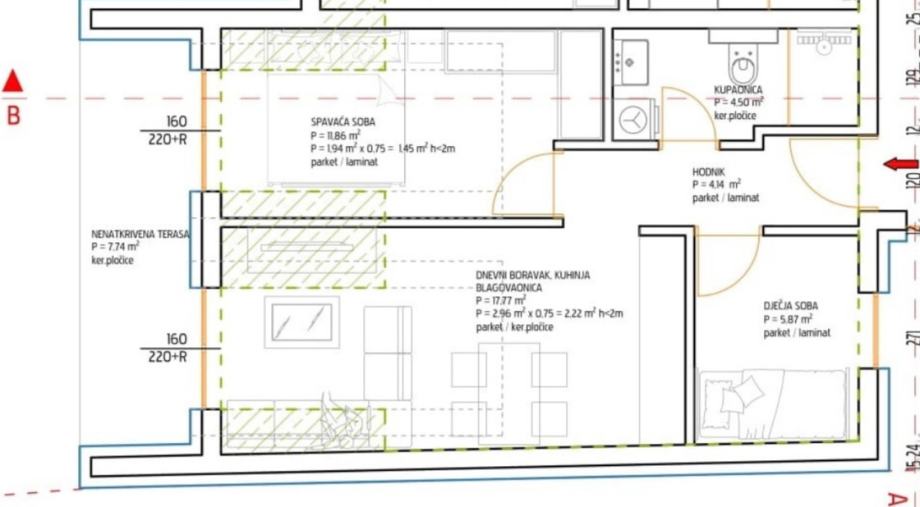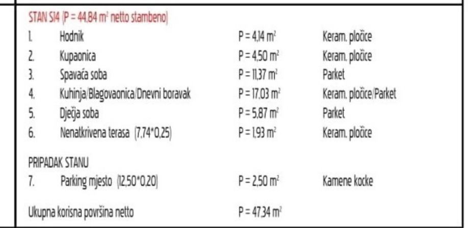 STAN NOVOGRADNJA SA 2 spavace sobe 47.34m2 samo 1599€ m2 (prodaja)