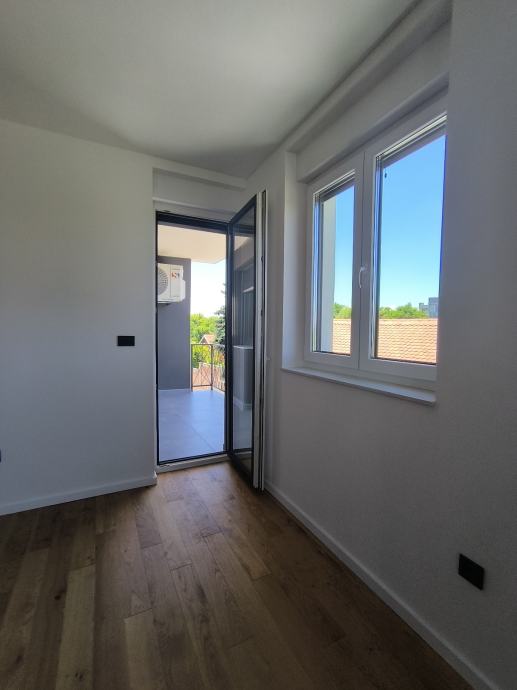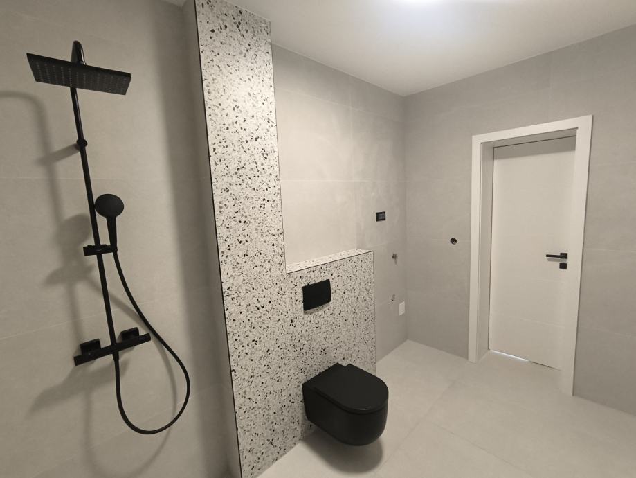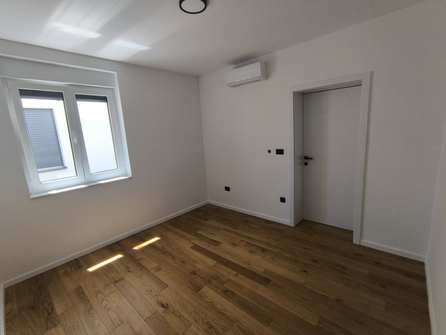 Opremljen je parketom, kvalitetnom keramikom i sanitarijom, klimatizacijom u svakoj prostoriji, automatskim roletama i stolarijom Rehau, modernim sobnim vratima i utičnicama, podno grijanje u svim prostorijama.