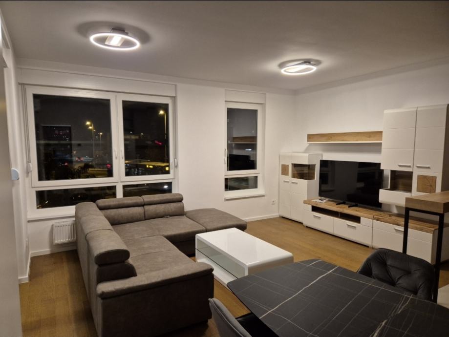Iznajmljujem potpuno uređeni stan i garažno parkirno mjesto u stambeno-poslovnoj zgradi na adresi Remetinec 48F, veličine 50,76 m2 , u neposrednoj blizini Arene Zagreb, prvi najam.