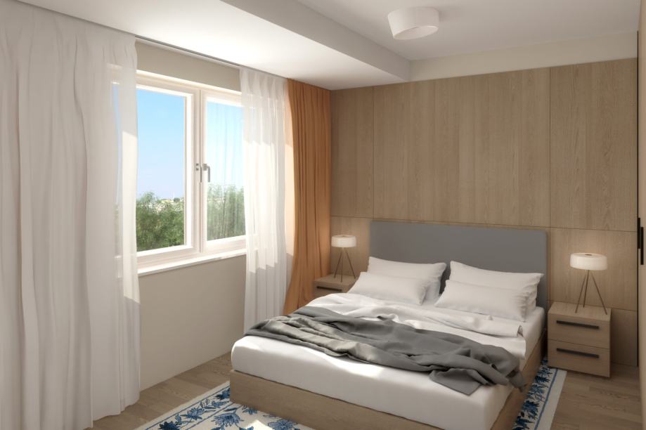 - Unutarnja stolarija: lakirana je u mat bijeloj boji sa skrivenim pantima, magnetnom bravom te zvučno izoliranim krilom koji je ispunjen ivericom. Ulazna vrata u stan su protuprovalna/ protupožarna te zvučno izolirana s master key sistemom marke Dierre van standardne dimenzije (izvedba visokog standard).